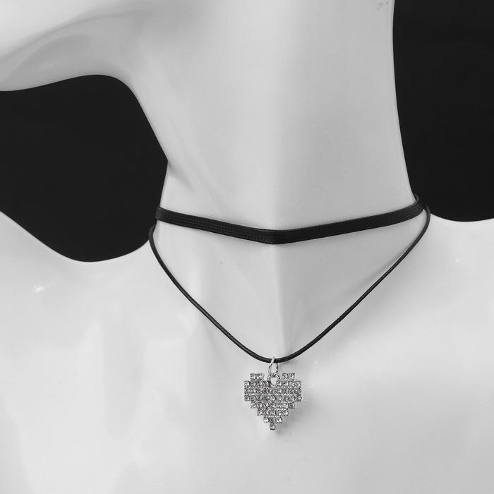 Чокер «Двойной» с нитью, сердце графика, цвет бело-чёрный в серебре, L=40 см