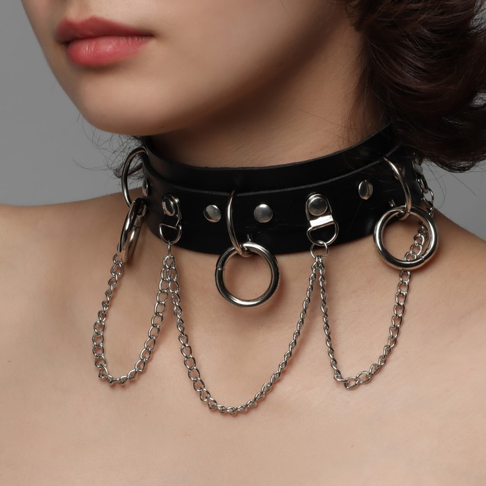 Чокер «Искушение» цепи и кольца, цвет чёрный в серебре, 40 см