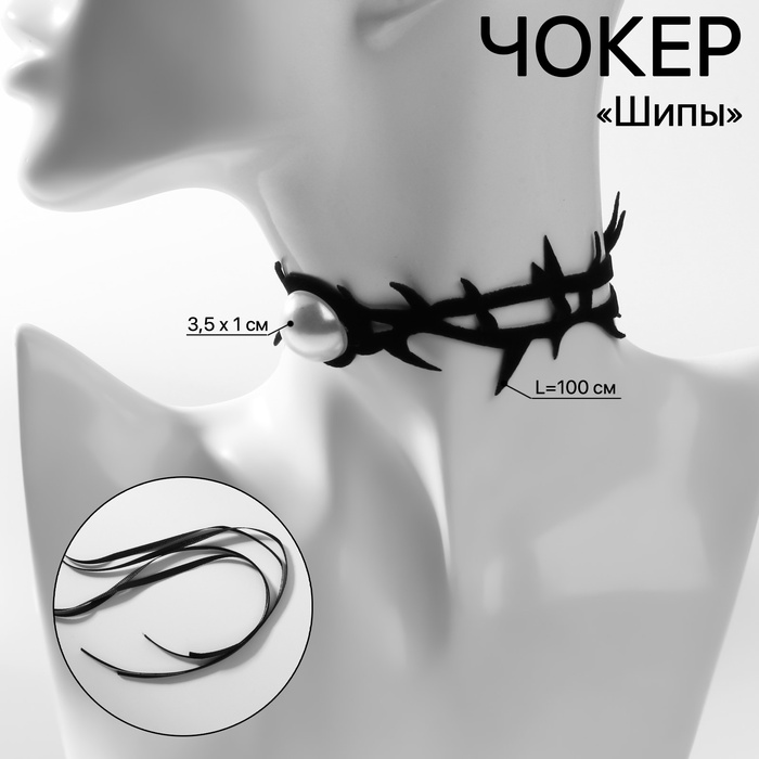 Чокер «Шипы» мягкие, на завязке, цвет бело-чёрный, 100 см