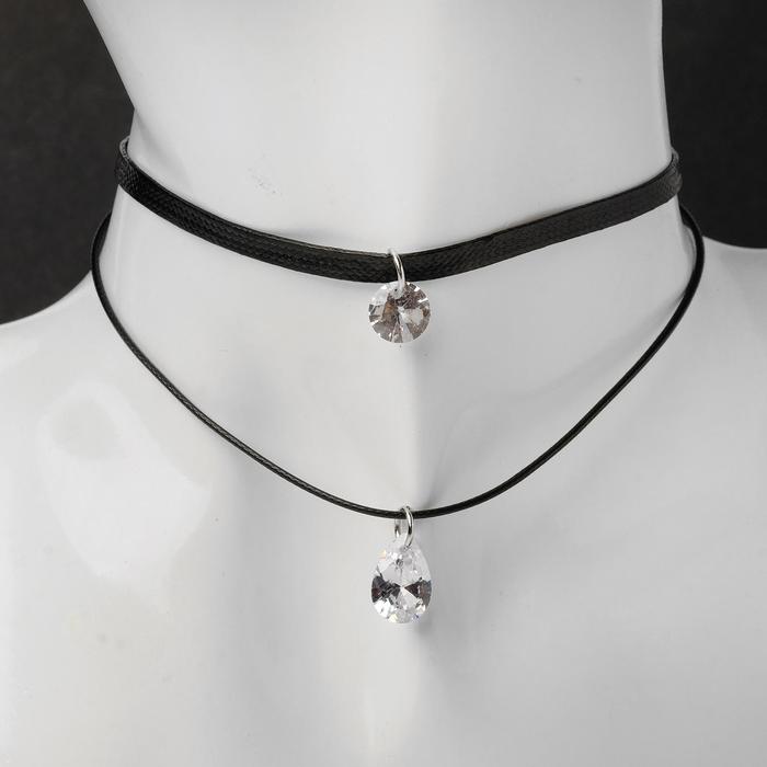 Чокер «Две нити» капля мини, цвет белый,35 см