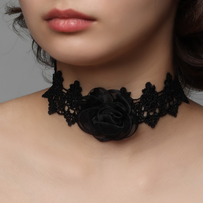 Чокер «Танго» цветок в ажуре, цвет чёрный, 30 см