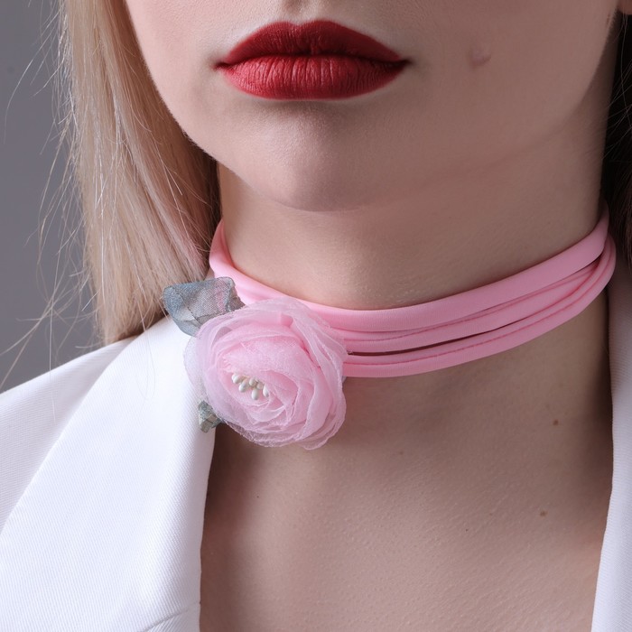 Чокер «Танго» роза с листьями, цвет розовый, 130 см