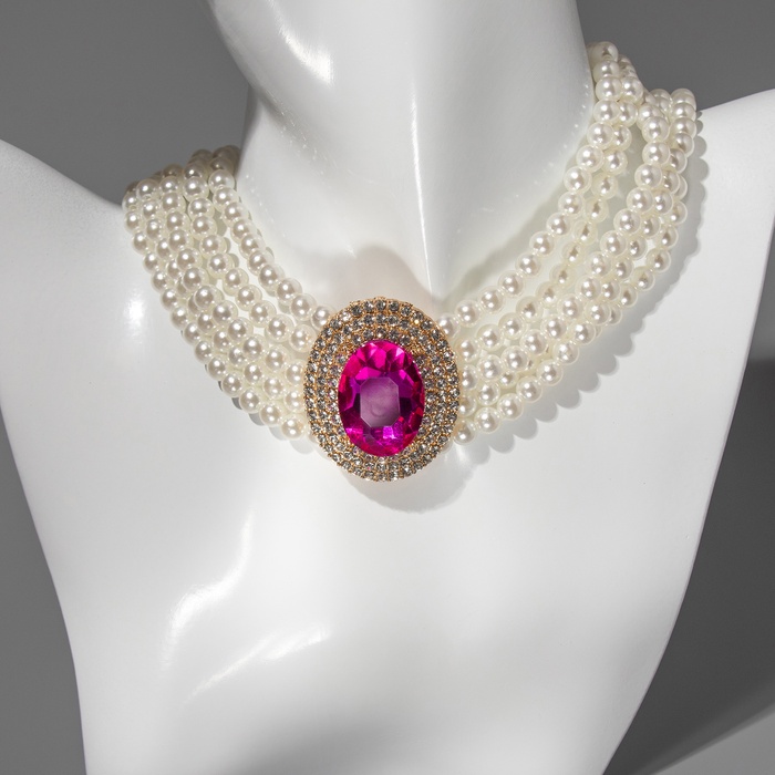 Чокер-колье «Роскошь» жемчужое, розовый в золоте, 30,5 см