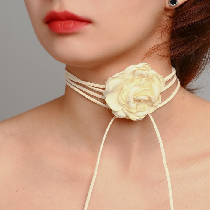 Чокер «Танго» цветок на шнурке, роза тренд, цвет белый