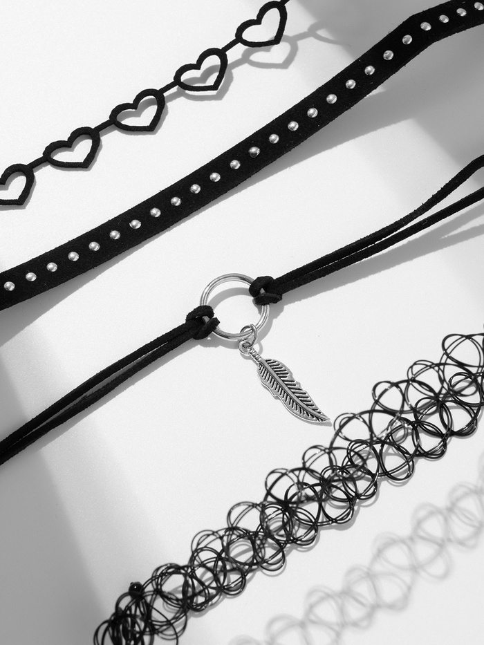 Чокер «Ассорти» романтика, (набор 4 шт.), цвет чёрно-серебряный, 30,5 см