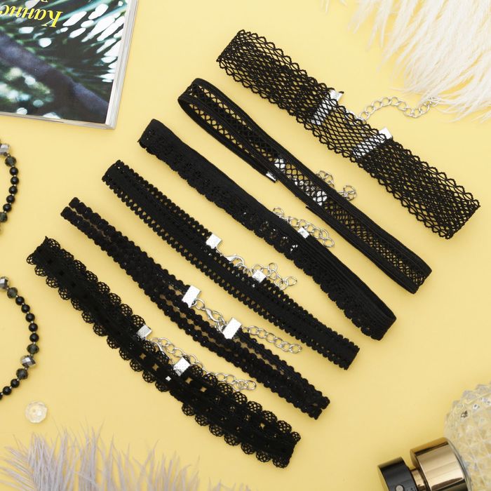 Чокер «Ассорти» ажур, (набор 6 шт.), чёрный,30.5 см