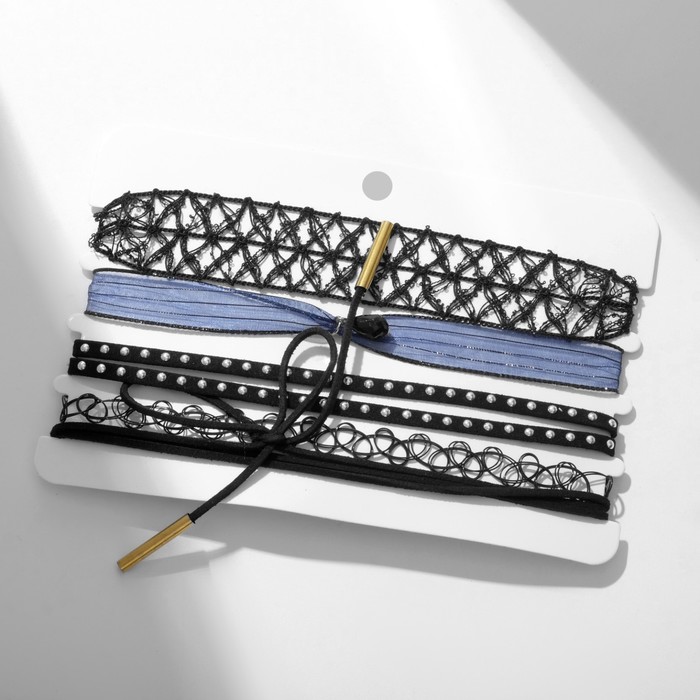 Чокер «Ассорти» плетение, (набор 5 шт.), цвет чёрно-синий, L=30,5 см