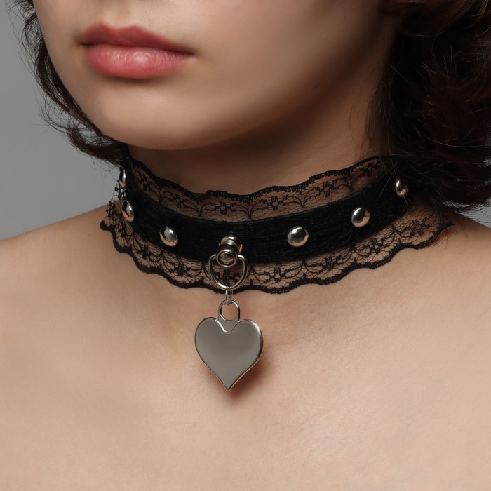 Чокер «Искушение» кружево и сердце, цвет чёрный в серебре, 40 см
