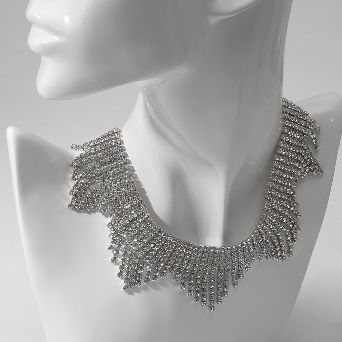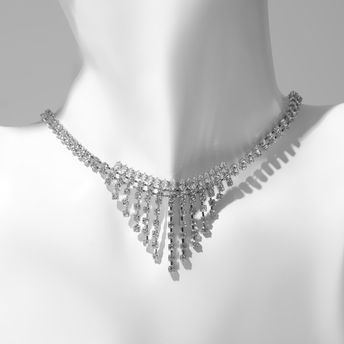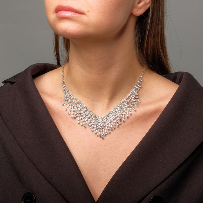 Колье «Драгоценность» капля, белое в серебре, 34 см