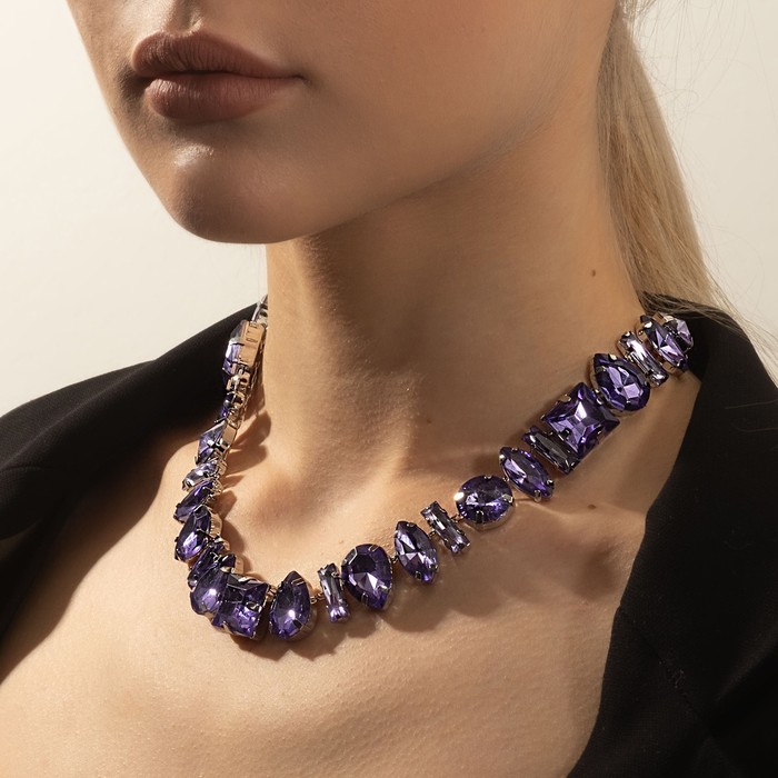 Колье «Драгоценность» геометрия, сиреневое в серебре, 32 см