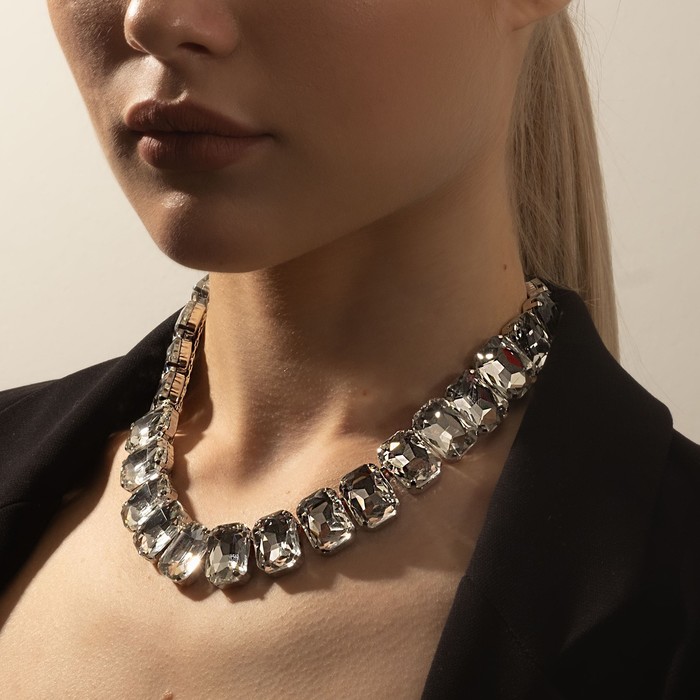 Колье «Драгоценность» прямоугольники, белое в серебре, 32 см