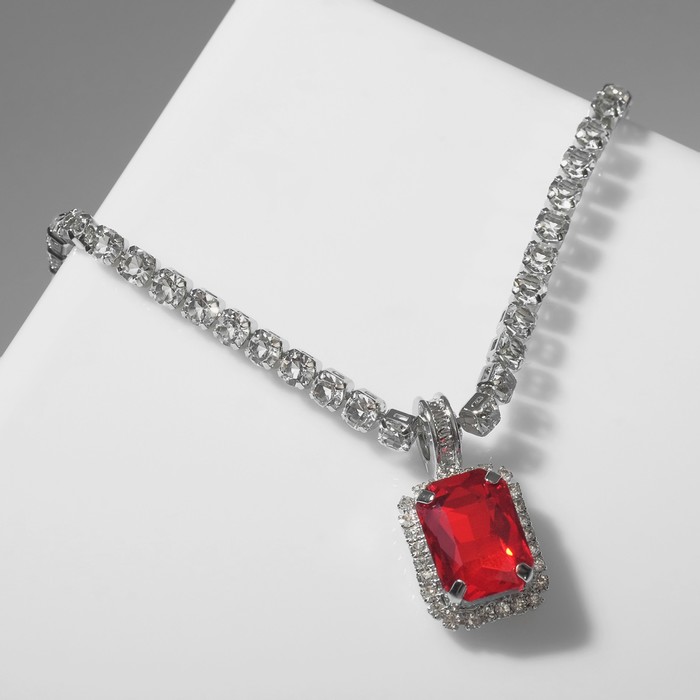Колье «Драгоценность» квадрат, бело-красное в серебре, 36 см