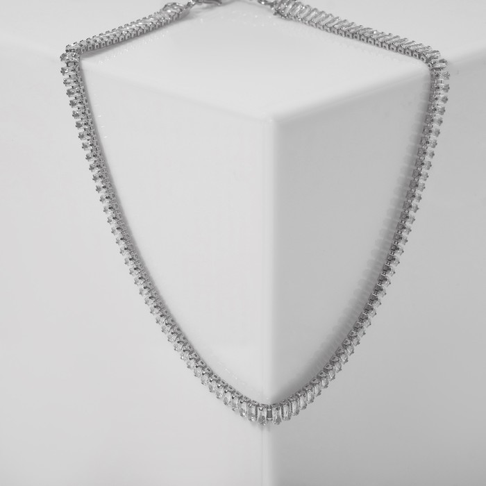 Колье «Драгоценность» прямоугольники узкие, белое в серебре, 30 см