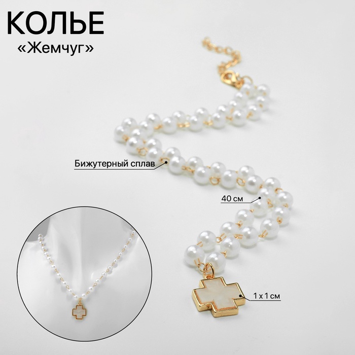 Колье «Жемчуг» элегантный крест, цвет золото, 40 см