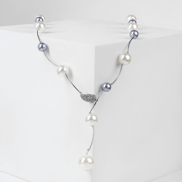 Колье «Флёр» шарики, бело-серое в серебре, длина регулируемая, №12, бусины №16, №20, 40-87 см