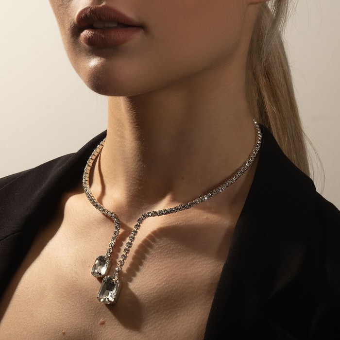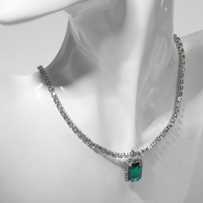 Колье «Драгоценность» квадрат, бело-зелёное в серебре, 36 см