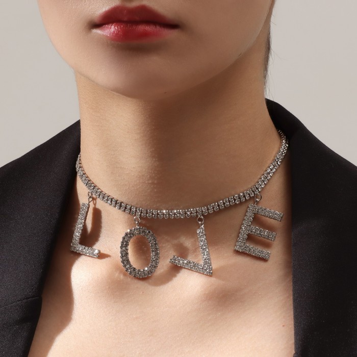 Колье LOVE, белое в серебре, 30 см