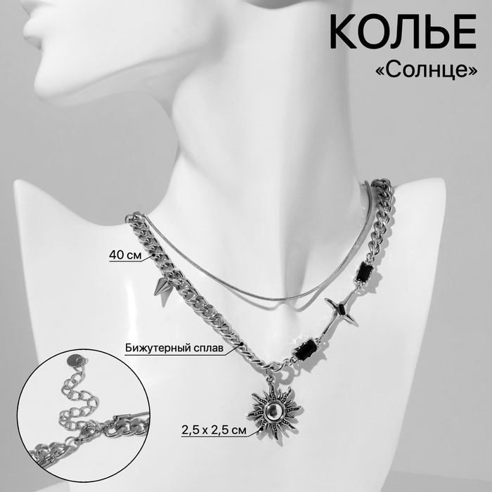 Колье «Солнце», чёрное в серебре, 40 см