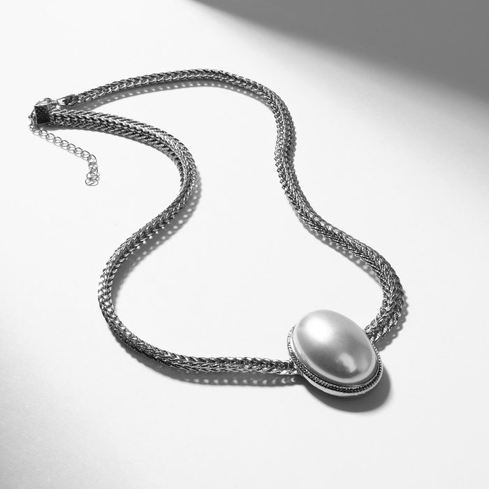 Колье «Жемчужина» овал, белое в серебре, 40 см