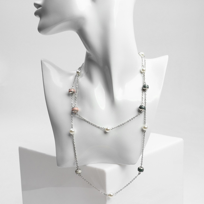 Колье «Бусины» нежность, цвет серебро 90 см