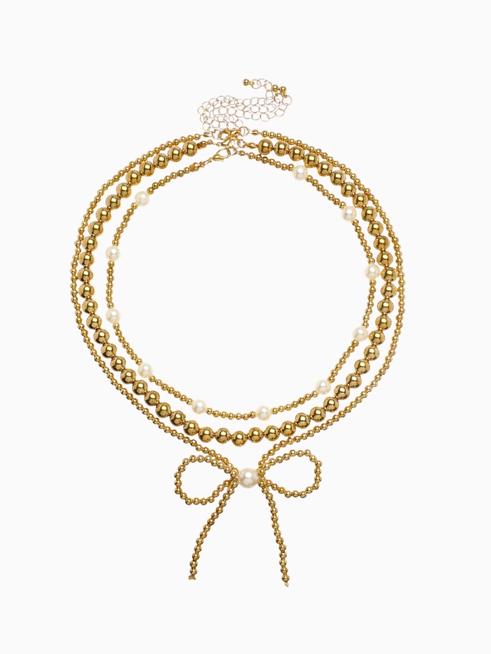 Колье «Многослойность» бантик, белое в золоте