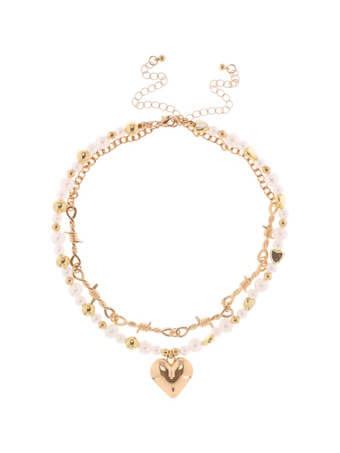 Колье «Многослойность» сердце, белое в золоте