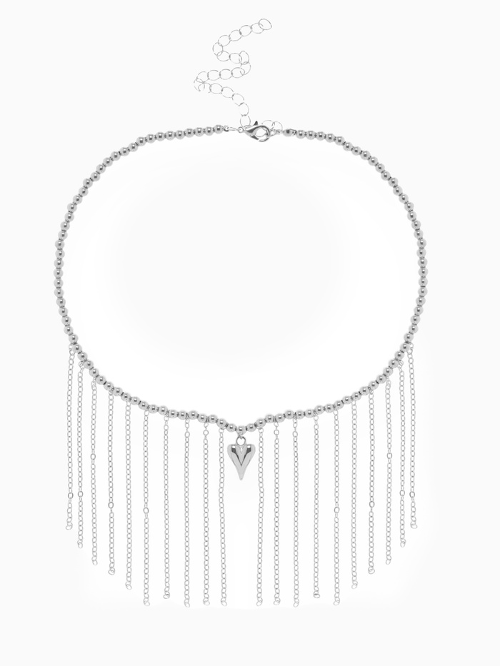 Колье «Сердце» водопад с бусинами, цвет серебро