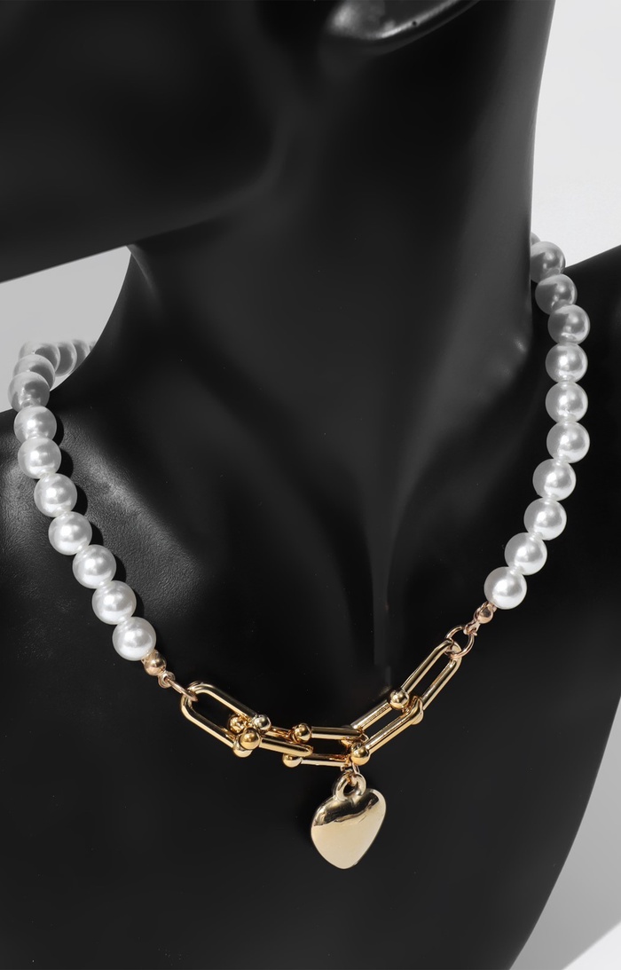 Колье с жемчугом «Сердце», белое в золоте, 37 см