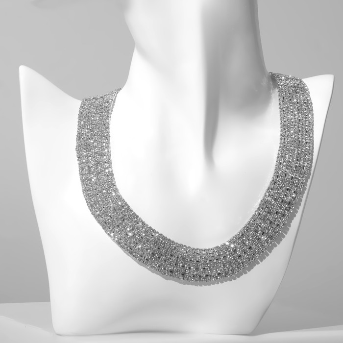 Колье «Лёд» сетка, белое в серебре, 40 см
