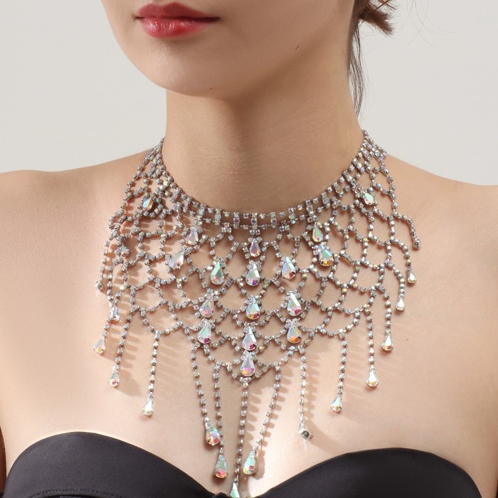 Колье «Крошка» блеск, радужное в серебре, 40 см