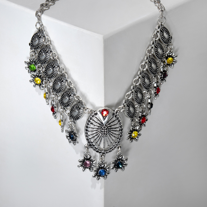 Колье «Индия» овалы, цветное в чернёном серебре, 30 см