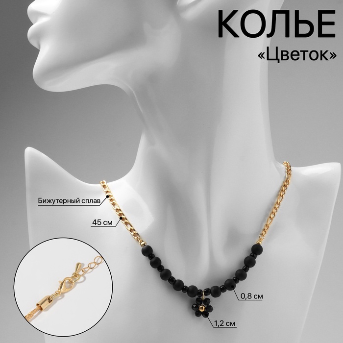 Колье «Цветок» амелия, чёрное в золоте, 45 см