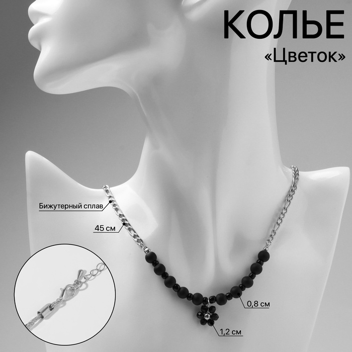 Колье «Цветок» амелия, чёрное в серебре, 45 см