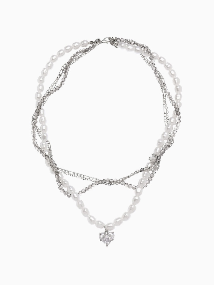 Колье «Акцент» сердце, многослойное, бело-серое в серебре