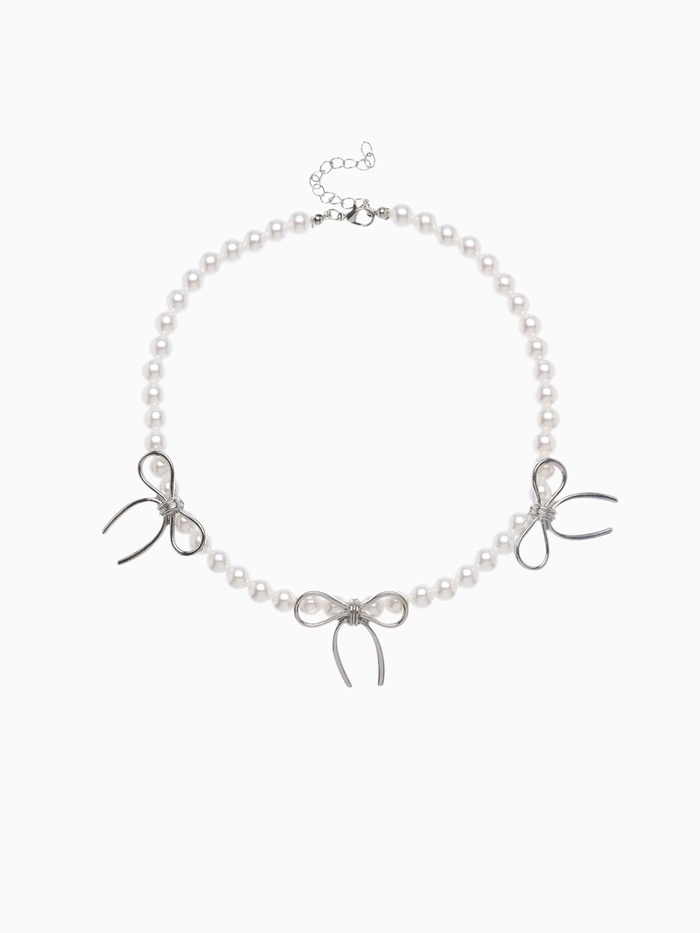 Колье «Бантик» с жемчугом, белое в серебре