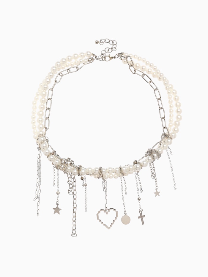 Колье «Жемчуг» сердце, шар №8, белое в серебре, L= 45 см
