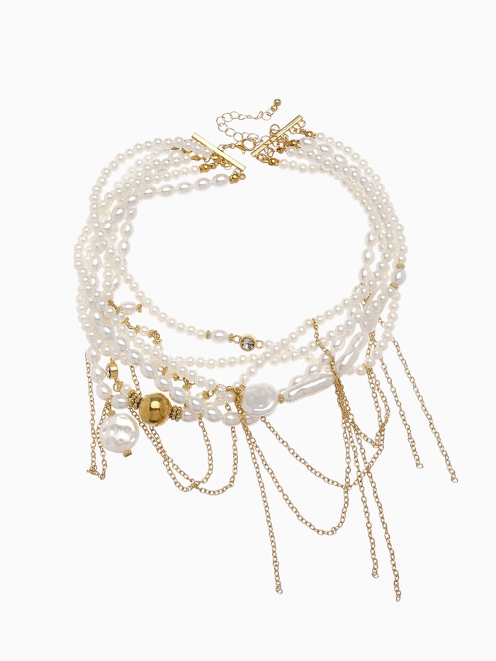 Колье «Многослойность» жемчужные бусины, белое в золоте