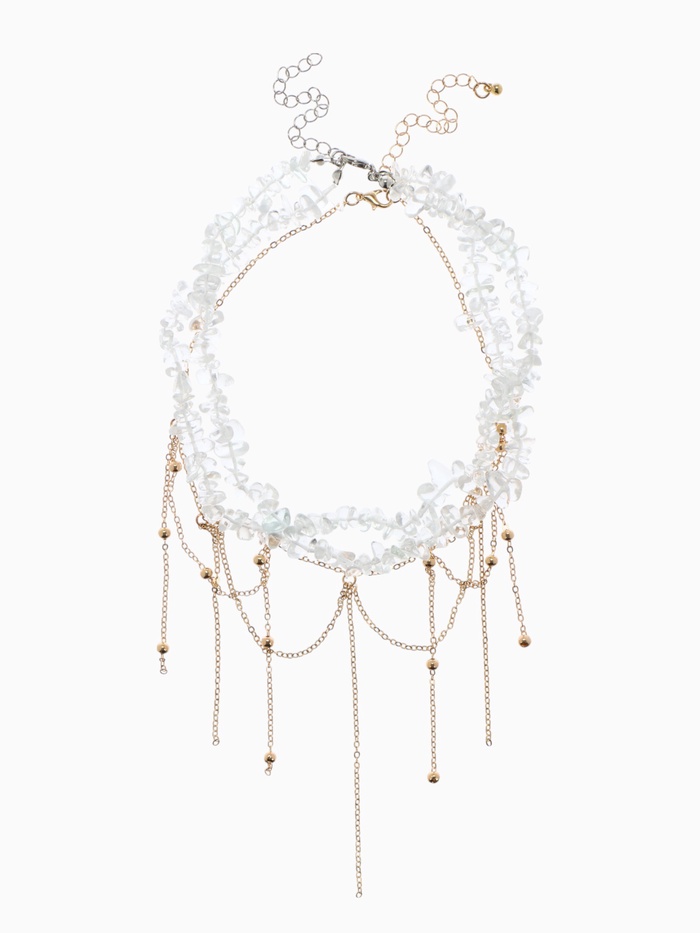 Колье «Хрусталь» водопад, белое в золоте