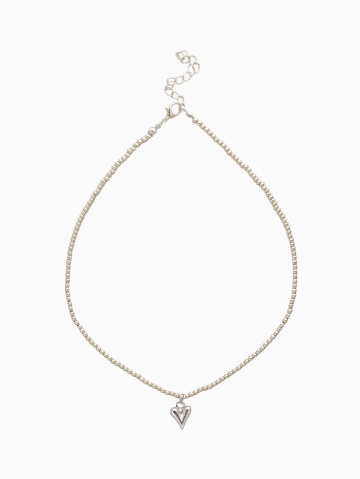 Колье из бисера с подвеской «Сердце под гематит», цвет серебро