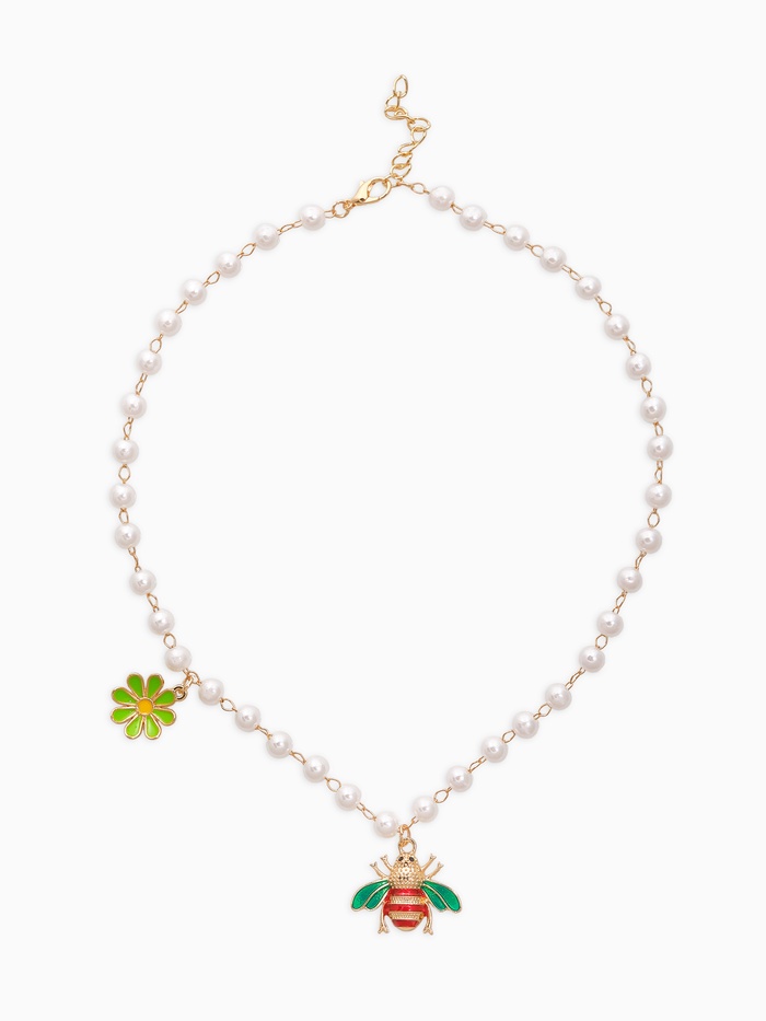 Колье на жемчужной дорожке «Пчёлка», цветная в золоте 40+удл, d=6