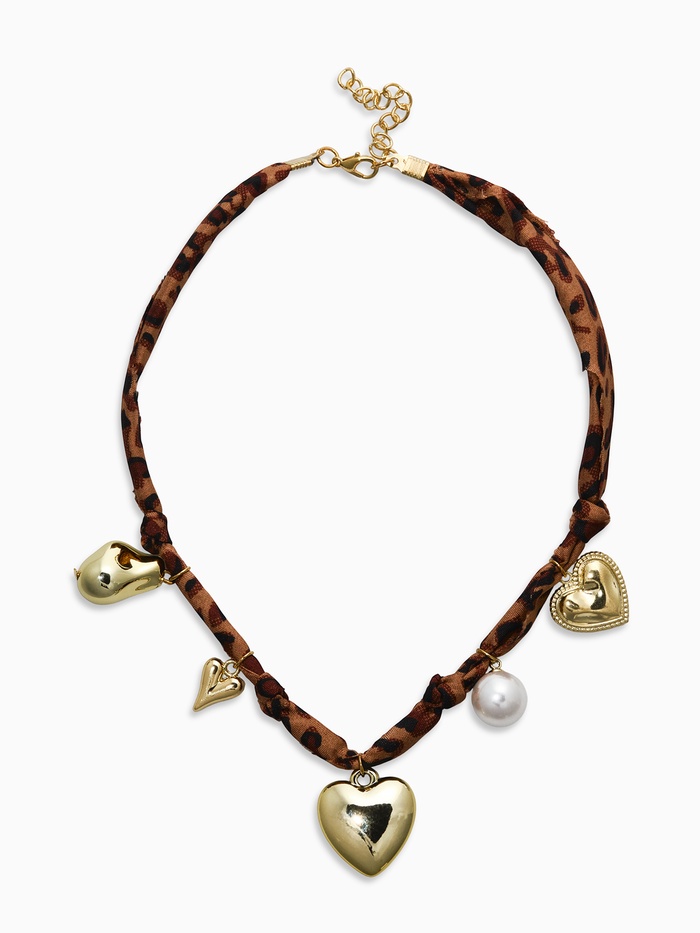 Колье с подвесками «Леопард. Сердце», 40 см, розовый, коричневый в золоте