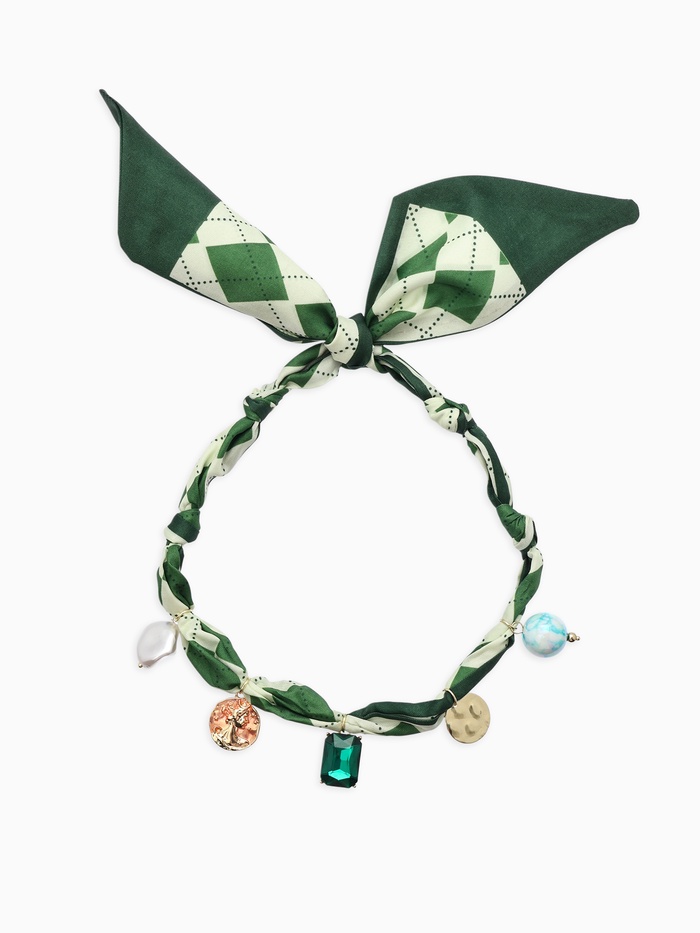Колье чокер на платке «Стиль». цвет изумрудный с золотом