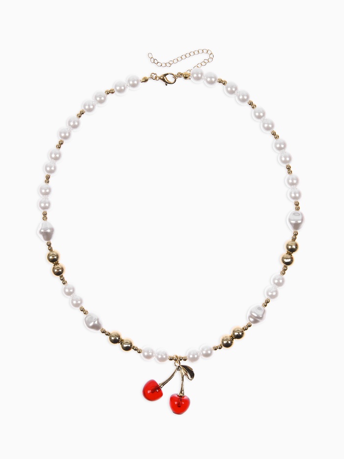 Кулон на жемчужных бусах "Вишня", цвет белый в золоте