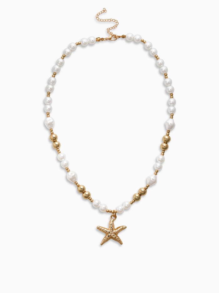 Кулон на жемчужных бусах «Морская звезда», 55 см, белый в золоте