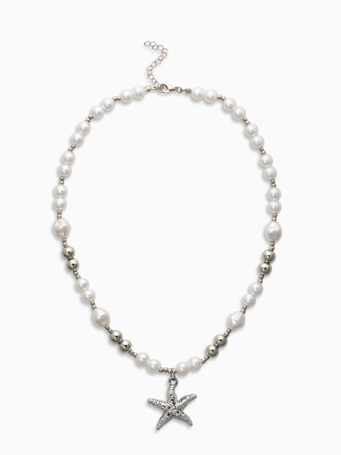 Кулон на жемчужных бусах «Морская звезда», 55 см, белый в серебре