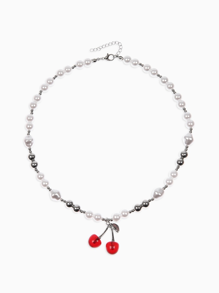 Кулон на жемчужных бусах "Вишня", цвет белый в серебре
