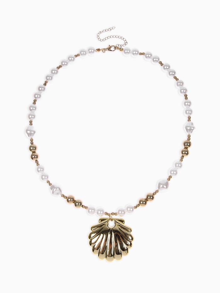 Кулон на жемчужных бусах "Ракушка", цвет белый в золоте