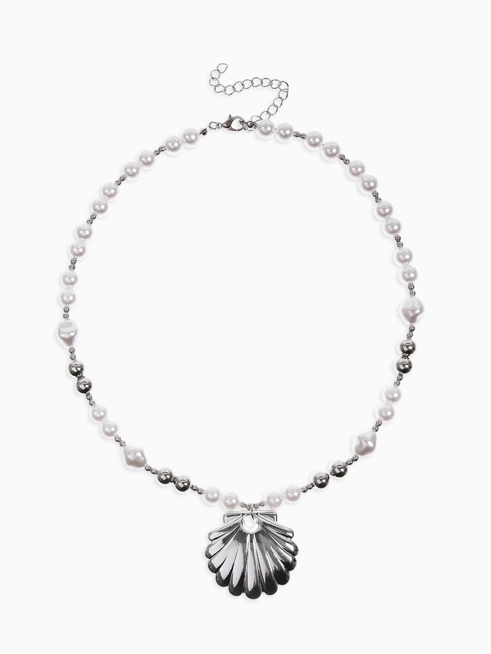 Кулон на жемчужных бусах "Ракушка", цвет белый в серебре