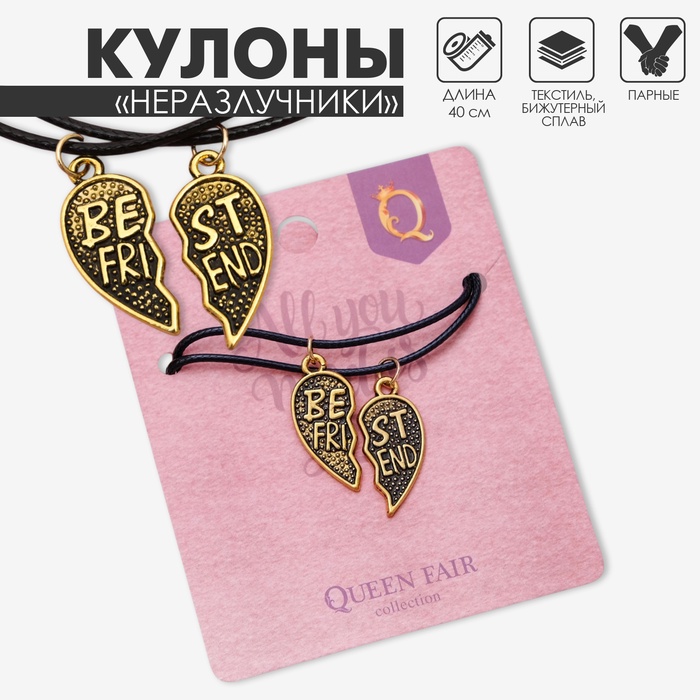 Кулоны парные на шнурке Best friends, цвет чернёное золото, 40 см