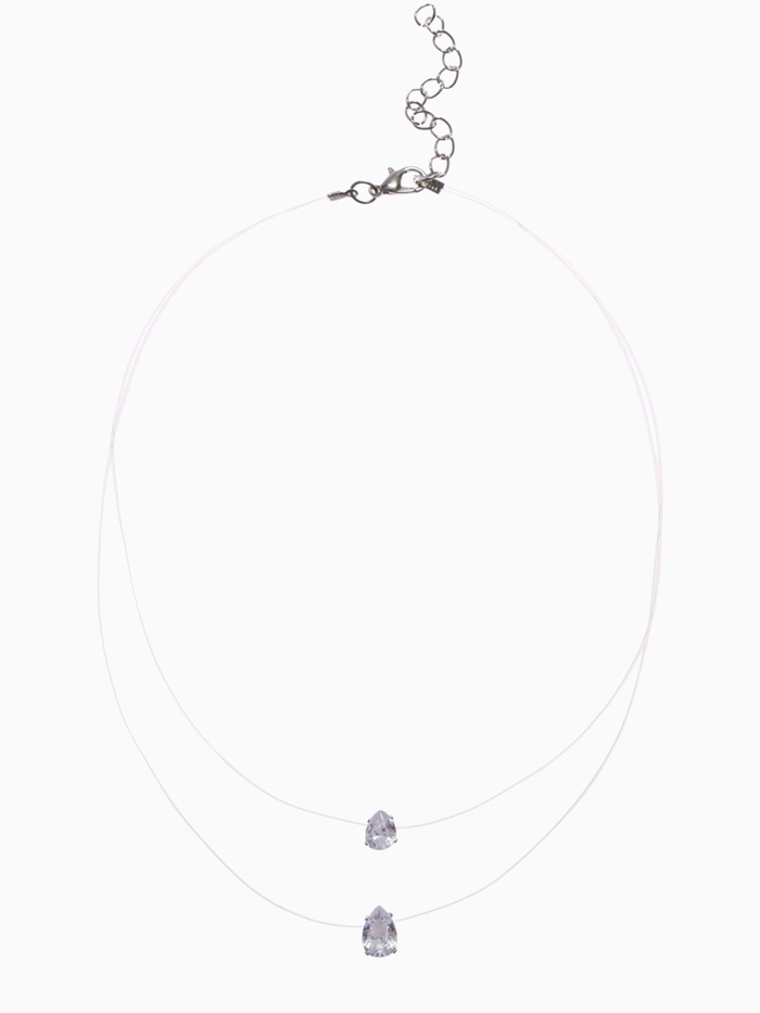 Кулон на леске «Двойная слеза», белый в серебре, 40 см